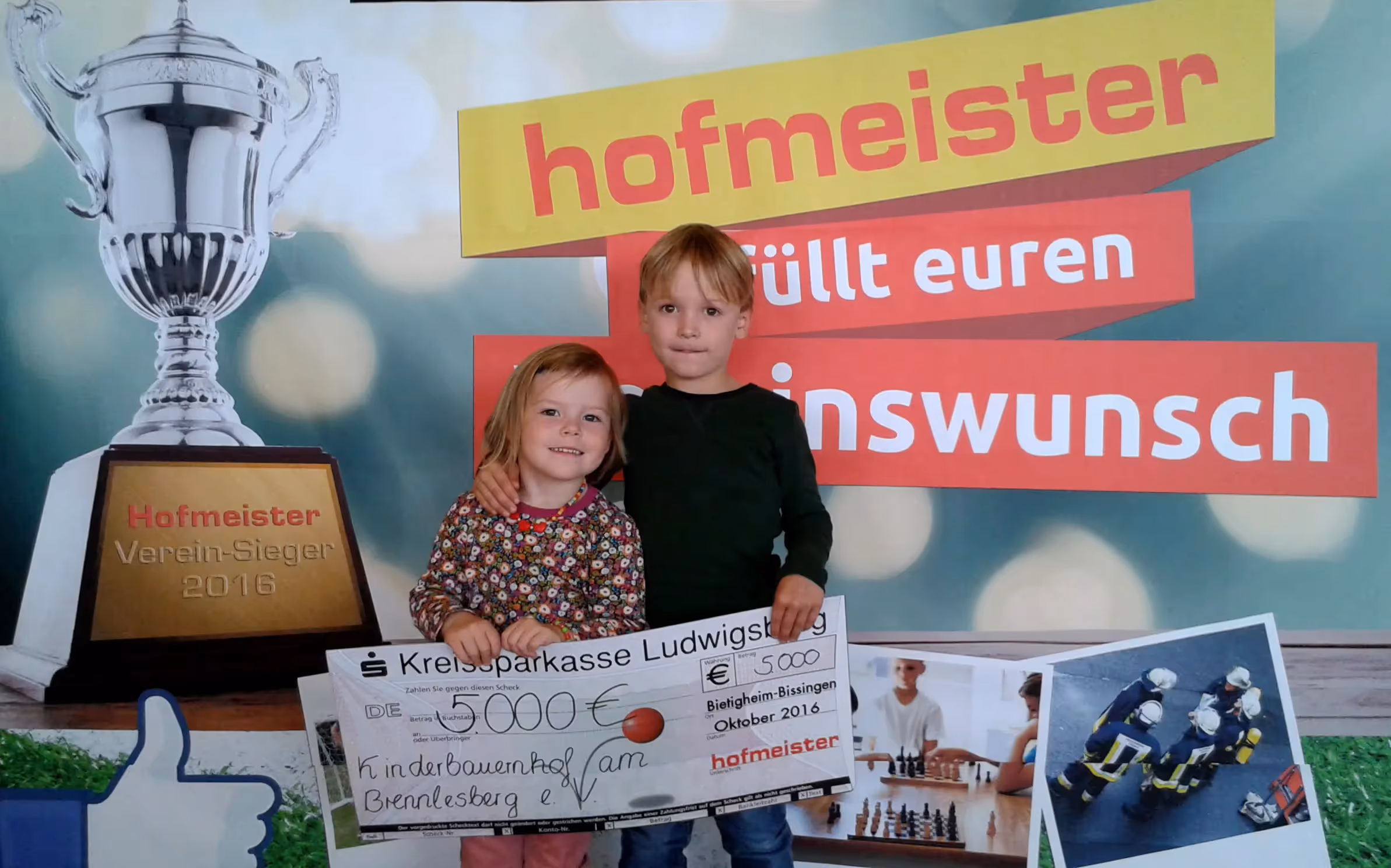 Nach einem wochenlangen Abstimmungskrimi ausschließlich über Facebook im Rahmen der „Hofmeister Vereinswunsch 2016“-Aktion ist es uns dank unzähliger Wählerstimmen nach einem nervenaufreibenden Auf und Ab letztendlich gelungen, uns unter den begehrten ersten zehn Rängen mit den meisten Likes zu platzieren. Dies galt als Voraussetzung, um bei der Preisverteilung überhaupt berücksichtigt zu werden. Aber damit nicht genug: Der Kinderbauernhof konnte die Jury überzeugen, die die einzelnen Projekte anhand verschiedener Kriterien wie Präsentation, soziales Engagement, Dringlichkeit sowie finanziellem Bedarf bewertete. Aus dem Preisgeld von insgesamt 33.000 Euro wurden wir vergangenen Samstag bei Hofmeister in Sindelfingen neben zwei weiteren Mitbewerbern mit dem höchsten Einzelbetrag von 5.000 Euro prämiert.